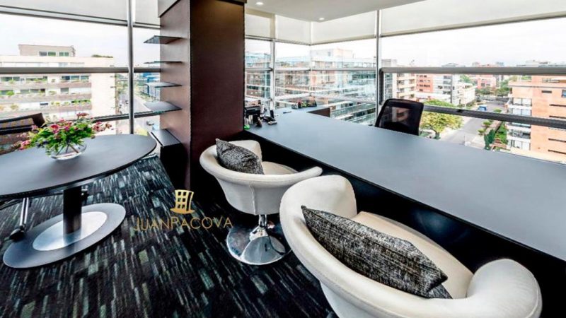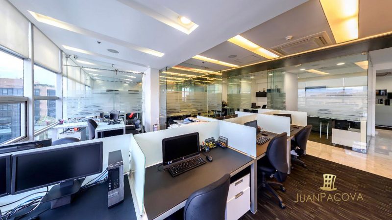 PARA INVERSIONISTAS, con contrato vigente hasta Diciembre de 2028. Elegante oficina de 246 m2 totalmente amoblada, con excelente iluminación, cuenta con moderna recepción y baño privado, separado por una división en vidrio con apertura biométrica. Cuenta con 6 oficinas privadas, 22 puestos de trabajo en área abierta, 1 oficina presidencial con baño privado y sala de juntas de 8 puestos. La oficina cuenta con área de archivo, 1 rack para servidores, cafetería con comedor y muebles de alta gama, 5 parqueaderos privados. Zonas comunes: Baterías de baños por piso, Sistema de acceso biométrico, edificio inteligente con sistema contra incendios, auditorio doble altura para 70 personas, 2 salas de negocios entre 12 y 15 personas, terraza con salón VIP, 4 ascensores, planta eléctrica suplencia total, torre de enfriamiento, sistema contra incendios.